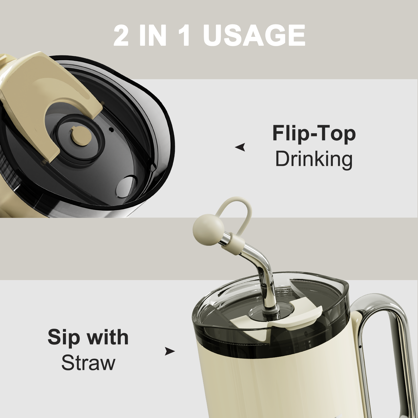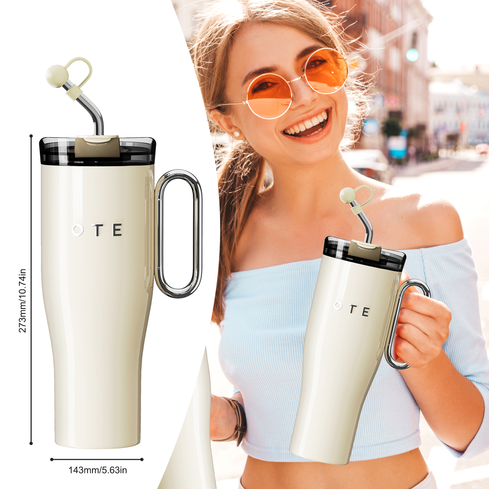 OTE 1.2 L (40 oz) Travel Mug with Handle, Double-Walled Steel Vacuum Insulated Mug and Straw, BPA Free,Portable Car Mug Tumbler, Thermal Mug, Coffee Cup for Hot and Cold Drinks